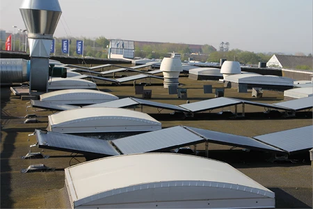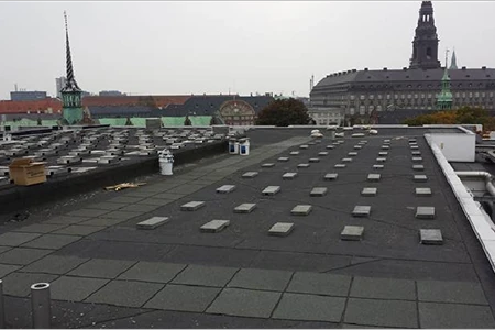 En Konsolar montageklods limes på taget med et bitumen forseglingsmateriale, hvorved solcellerne kan monteres, uden at tagfladen gennembrydes. Ovenpå klodsen monteres aluminiumsramme til montering af solpaneler, enten vandret (løsning 1) eller med hældning (løsning 2).